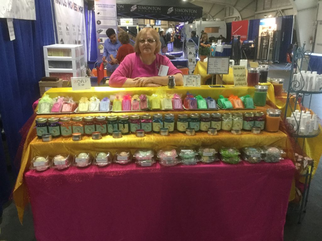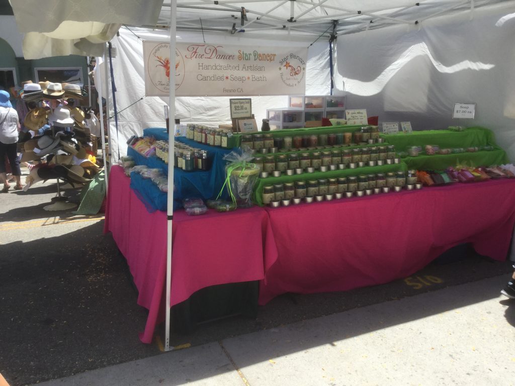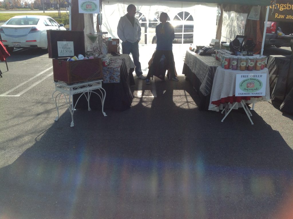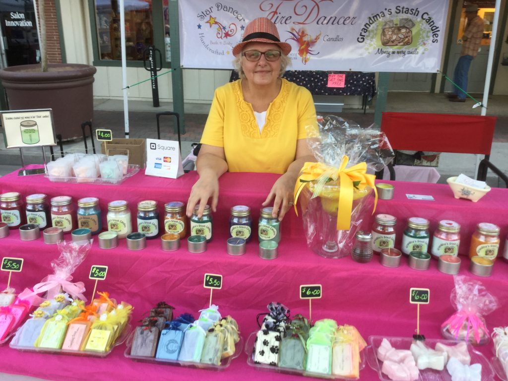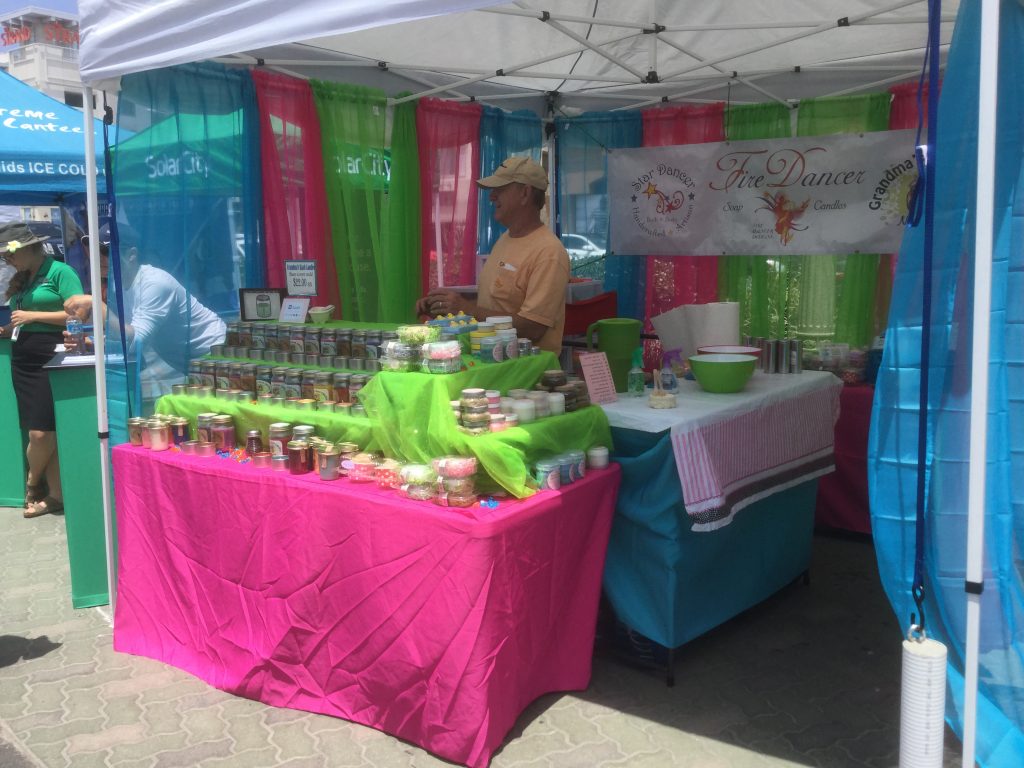 We started out a little over 12 years ago at a local farmers market. We started out selling jewelry and then quickly pivoted to handpoured candles and then added handcrafted soap soon after. See pictures below of our first craft booth. and its evolution. Our now adult grandaughter and grandson hung out with us at most of our markets and became adept at customer service along the way.